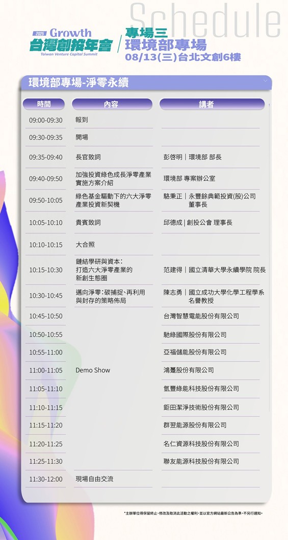 【#2025台灣創投年會】🌱8/13(三)環境部-淨零永續專場